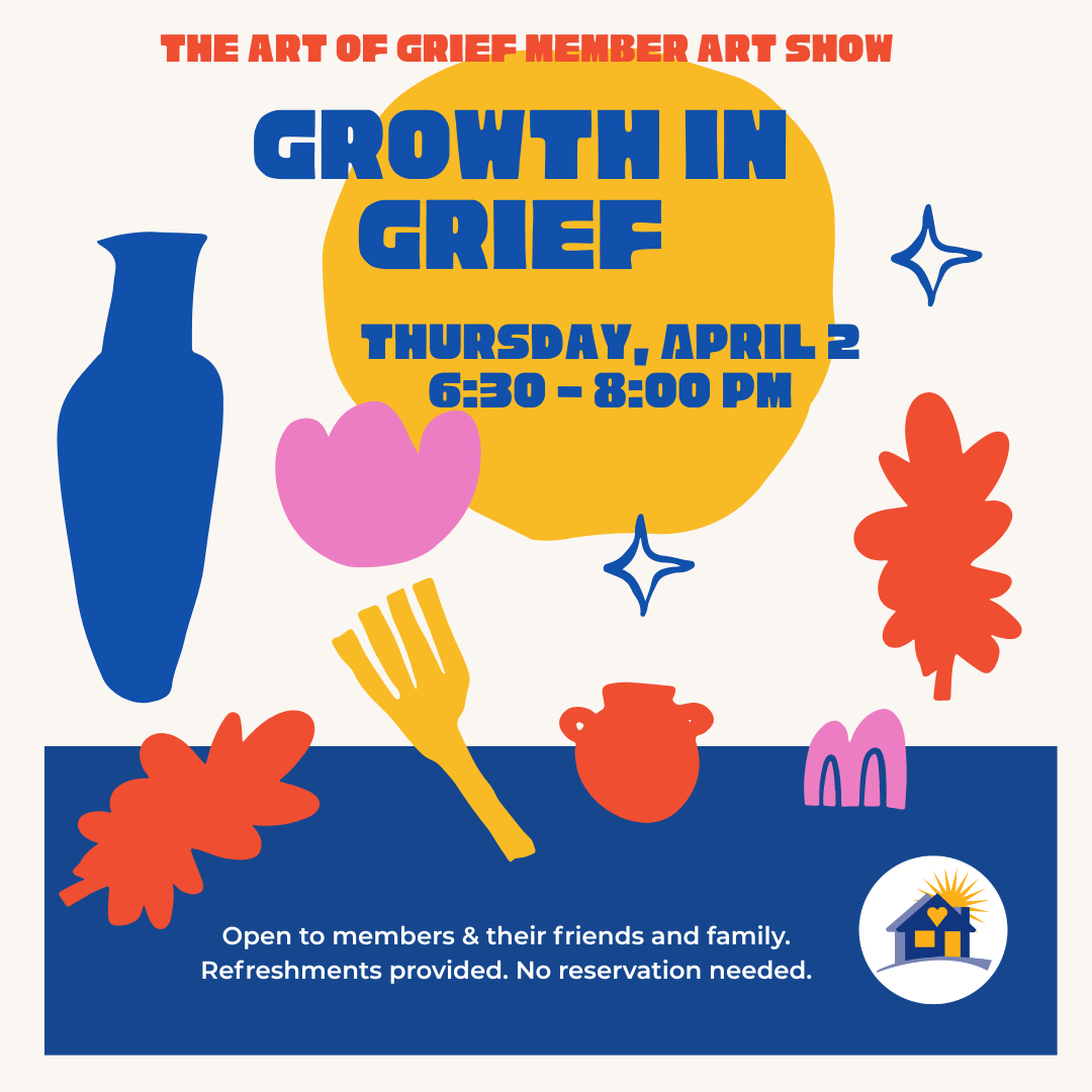 Join the "Growth In Grief" Art Show, featuring the work of members of The Art Of Grief 6-session program. Open to members & friends and family.